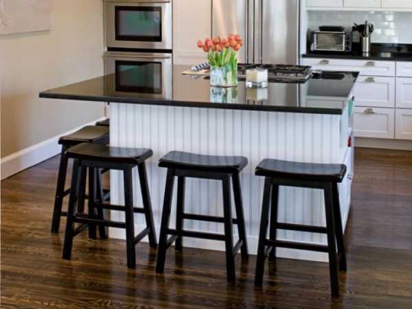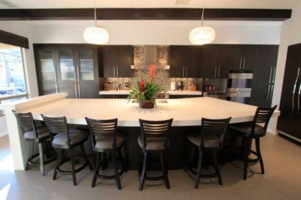 - Всякий раз усаживаться на высокие барные стулья, чтобы принять пищу, неудобно, а обычные стулья для островного стола низковаты.