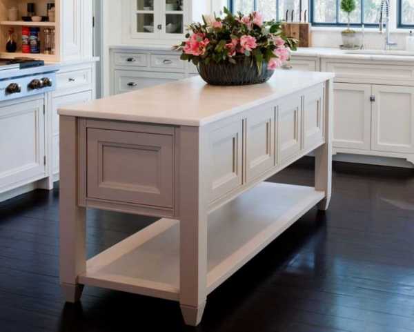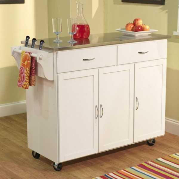 Мобильный остров. Это стол на колесиках, который при желании можно придвинуть к стене. Подходит для небольших кухонь или кухонь в квартире-студии.