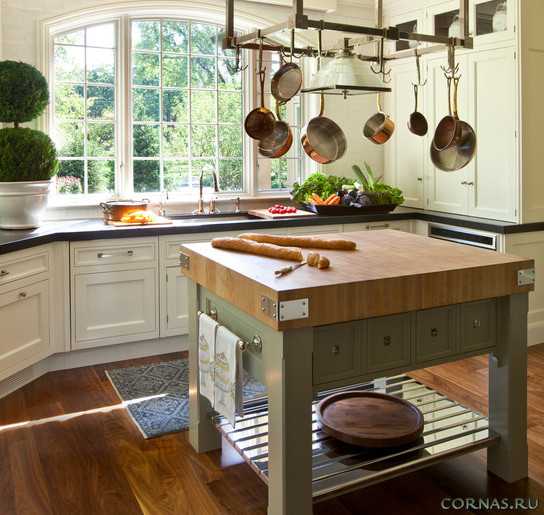 Эксперт по кухням Rebekaj Zaveloff говорит: «Я люблю применять открытые кухонные острова для небольших помещений, потому что вам не нужен будет дополнительный стол. Это обеспечивает прекрасный доступ к салатницам, кастрюлькам и сковородкам».