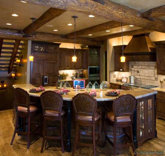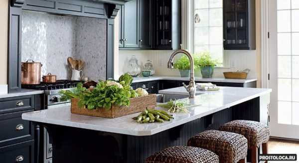 Вообще, кухонный остров — штука весьма удобная. Она прекрасно выполняет роль как рабочей, так и сервировочной поверхности, куда можно ставить готовые блюда перед подачей на стол. Красивый остров смотрится на кухне довольно интересно и привлекательно.