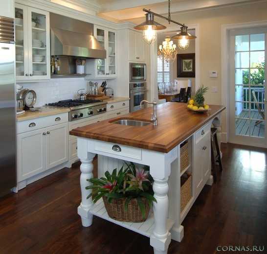 Стильно-изысканно, практично, и креативно, и функционально смотрится на каждой кухонной территории остров. Для чего его обустраивают? Для максимально полезного использования пространства кухни. Еще? Как дань стилю этно, эко, рустик и уже сегодня — даже классическому, оттеняя тем самым собственный отменный вкус. Да и согласиться несложно с тем, что кухня с островом всегда привлекает глубиной выраженности, соответствием дизайну, оригинальным решением. Желаете такую? Пробуйте! Получится!