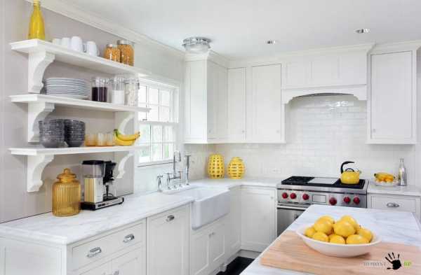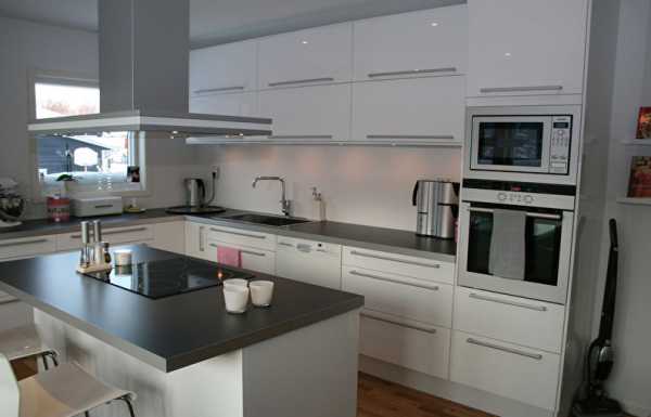 Рабочие зоны белой кухни можно сделать более темными.