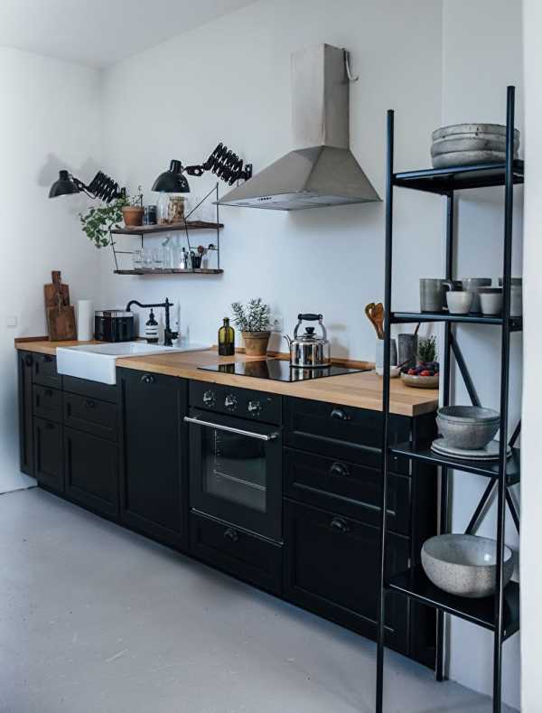 Невероятно стильно и немного сдержанно выглядят черные кухонные гарнитуры Икеа, контрастирующие со светлой отделкой стен или других предметов. Такое решение подойдет для современного стиля, в основном благодаря лаконичности.