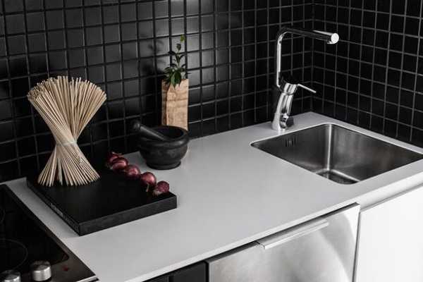 Прекрасный современный метод экономии пространства – соединение мойки, плиты и рабочей поверхности одной столешницей.