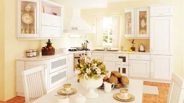 Интерьер для маленькой кухни в стиле прованс должен быть максимально светлым: классический белый, бежевый, горчичный, оливковый, песочный, лавандовый, бледно-коричневый.