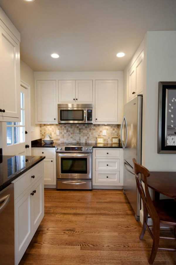 Если разубедить вас у нас не получилось, следуйте нашим советам по дизайну кухни маленькой площади в классическом стиле. Найдите золотую середину между изяществом, строгостью и функциональностью. Если высота кухни позволит, сделайте двухуровневые потолки, соблюдя строгость и четкость линий, что касается цвета – выберите белый, он добавит пространства и воздуха маленькой кухне. Для пола подойдет паркет, ламинат или плитка.
