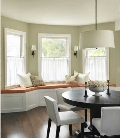 При наличии большого пространства можно установить у углу около оконного проема обеденный стол.