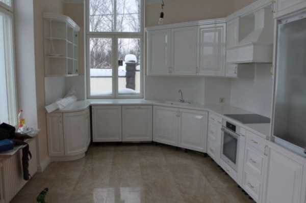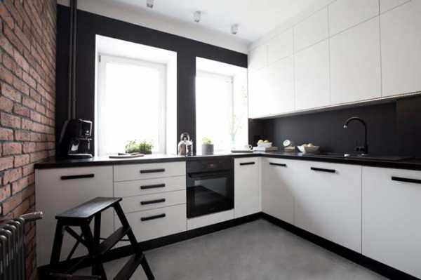 Стоит отбросить стереотипы и посмотреть на преимущества этого варианта. Взгляните на фото, где кухня не традиционно под окном. Но, выглядит эффектно и просторно.