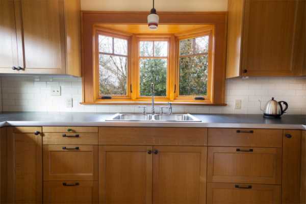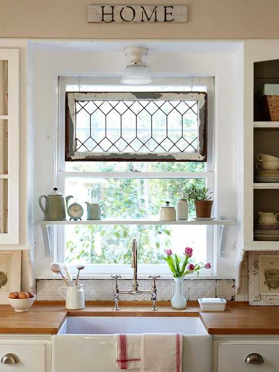 Еще один способ сделать помещение более компактным – установить мойку прямо под окном. Так Вы сэкономите место в помещении и добавите оригинальности дизайну кухни с окном.