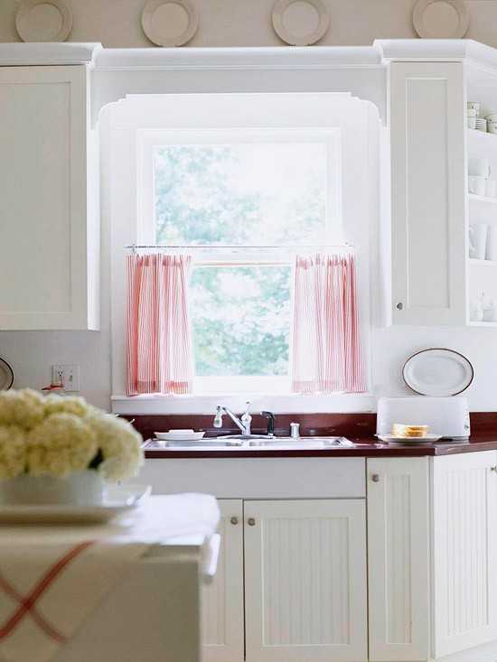 Конечно не забывайте и про оформление самих окон. Если вход в кухню расположен напротив окна, то тогда окно будет главным предметом на что обратят внимание при входе.