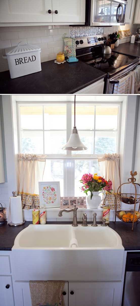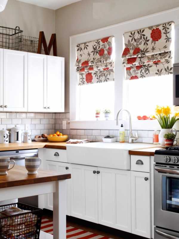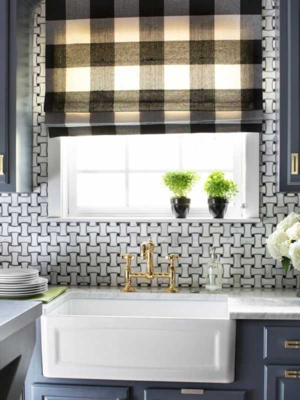 Если под окном находится мойка или рабочая поверхность, для декорирования проема лучше выбрать римские шторы или ролеты, которые можно будет легко поднять, чтобы не испачкать.