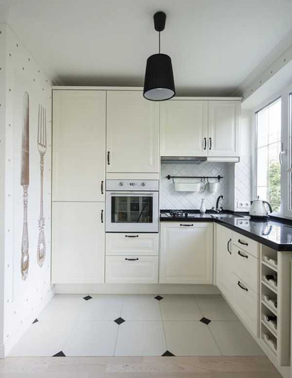 В случае с нестандартной формой кухни, то есть угловой кухни с окном, то здесь может быть искажение, к обстановке и собственно самому дизайну нужно подходить аккуратно.