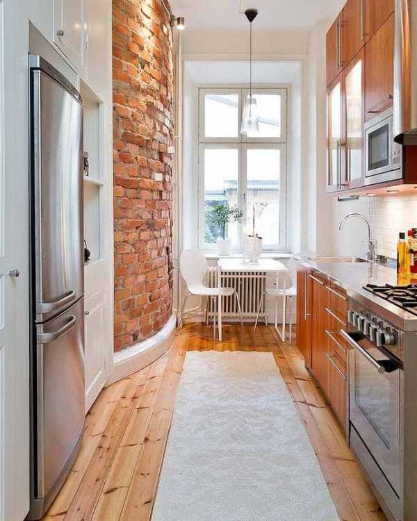 В нашей стране еще не принято размещать кухню вдоль окна. Но, как показывает практика, это зачастую единственный способ сделать узкую небольшую кухню более гармоничной. Это не только стильное решение, но и очень функциональное, так как задействованы дополнительные квадратные метры. Кухня вдоль окна – прекрасный вариант для маленьких помещений, площадью в 6-7 кв. метров.