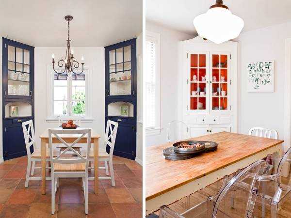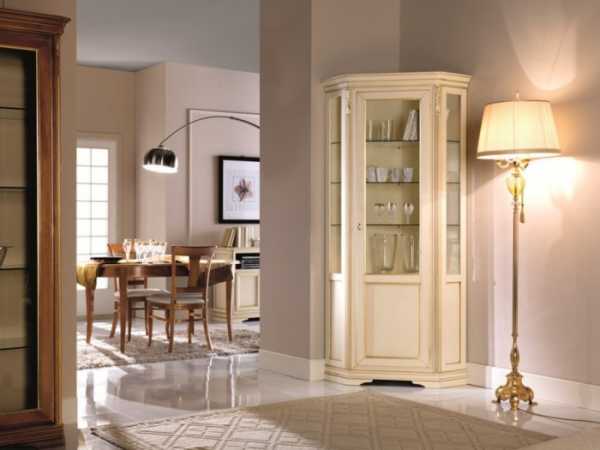 Угловые серванты подойдут для обычной кухни, оформленной в различных интерьерных стилях: