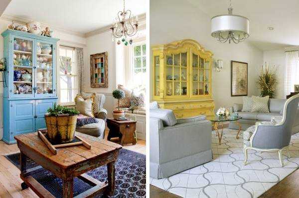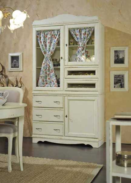 СОВЕТ! Чтобы сервант вписался в романтический интерьер прованского стиля, его рекомендуют состарить: кракелюр, патина и налет старины придадут ему новое настроение.