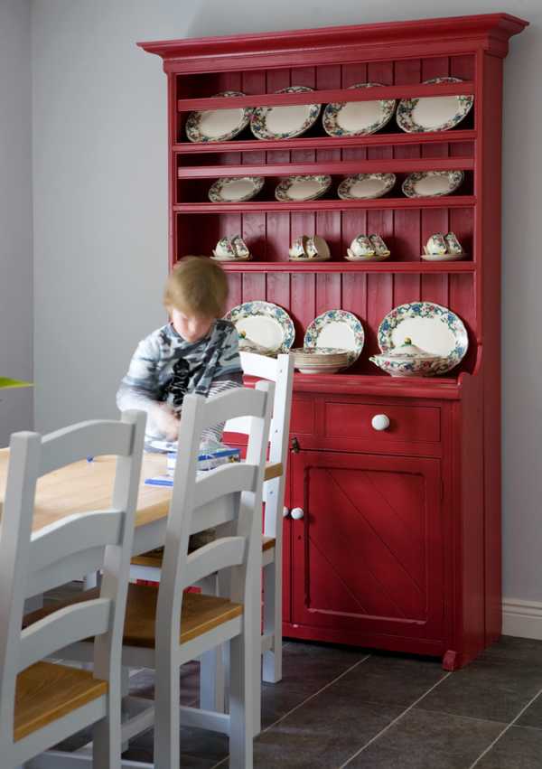 - Покрасить старый буфет в яркий цвет, который будет дополнять ваш интерьер.