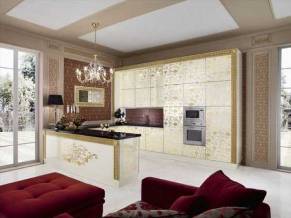 - Чтобы кухня стала образцом роскоши, необходимо забыть об экономии. Этот оригинальный стиль подразумевает выставление дорогостоящих предметов интерьера напоказ.