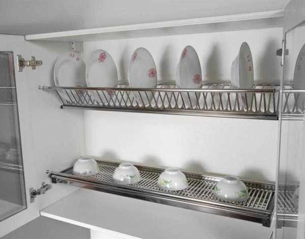 Встраиваемые посудосушители самые распространенные. В них входит решетка или решетки для тарелок и чашек и поддон. Сушилки для посуды имеют разные размеры, качество и различаются способом установки.