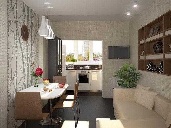 даже крошечная кухня не будет казаться такой в совмещенном помещении