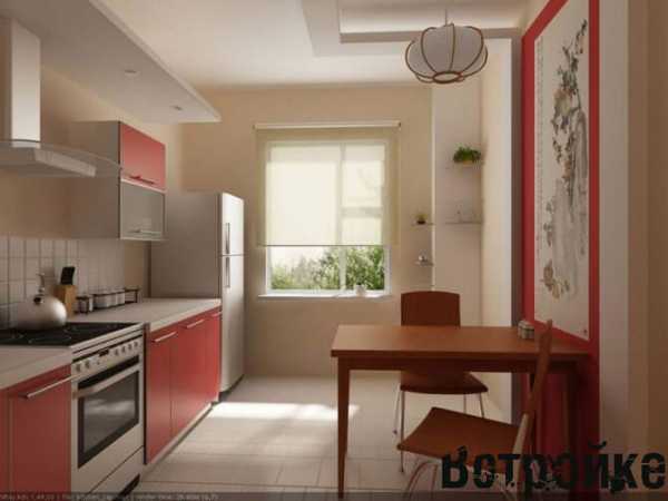 Если в кухне малогабаритной квартиры заложить дверь, ведущую из коридора, то в образовавшейся нише появится возможность установить шкаф-стеллаж или даже холодильник.