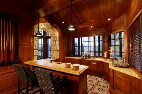- Барная стойка. Чем-то напоминает классический остров, такая же высокая, но уже. Напоминает о барах, салунах дикого запада, стиле лофт. Выглядит современно.