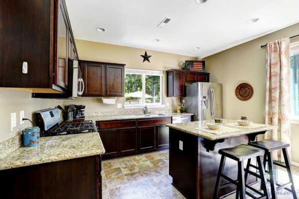 Дважды подумайте перед установкой острова, совмещенного с барной стойкой. Если вы поместите столешницу на оптимальную для бара высоту, работать на ней может быть неудобно. Поэтому прикиньте сразу, сумеете ли вы готовить без дискомфорта.
