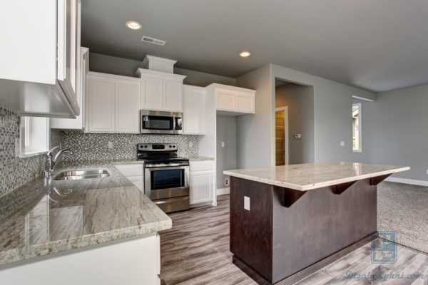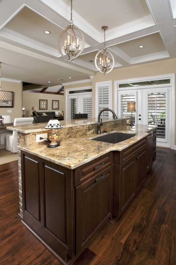 Маленький совет: разместите фигурную люстру непосредственно над кухонным островом. Она станет основным украшением, при этом обеспечивая достаточно света над рабочей поверхностью.