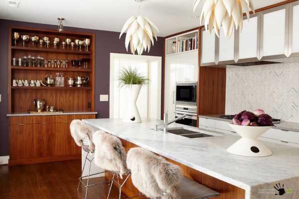 - Стильный вид. Еще лет 20 назад никто не задумывался о том, чтобы разместить кухню с островом и барной стойкой. Но времена меняются!