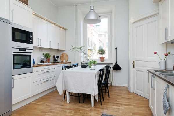 Идеальный вариант, позволяющий грамотно организовать обеденную зону — установка стола возле одной из стен, с укороченным рядом. Если кухня довольно маленькая, от использования полноценного обеденного стола рекомендуется полностью отказаться.
