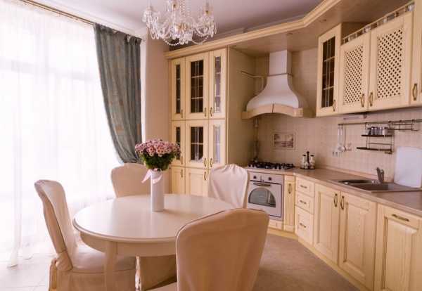 Белые и бежевые тона. Молочно-белый оттенок сам по себе ассоциируется со свободными интерьерами Прованса. Он как бы убирает границы кухни.