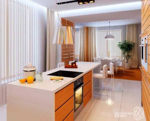 При приготовлении сильно пахнущей еды и объединении помещений распространяется запах, с которым бывает трудно справиться даже при наличии мощной вытяжки. Шум от рабочих приборов, например посудомоечной машины или комбайна будет мешать тем, кто отдыхает в зоне гостиной комнате, вследствие этого статус гостиной или столовой комнаты понижается.