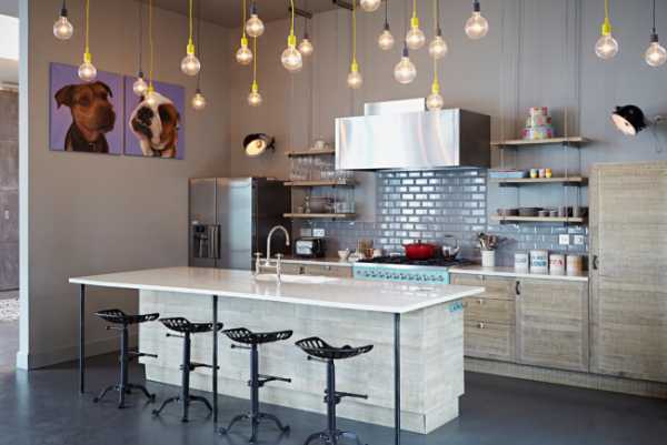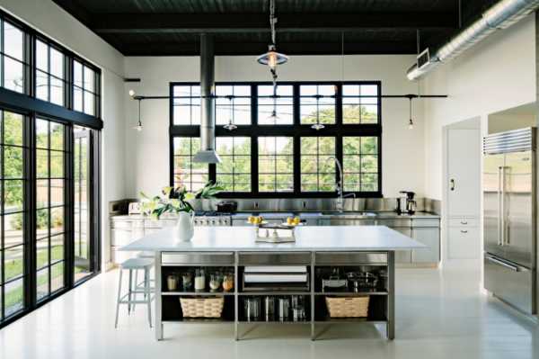 Индустриальный стиль оформления кухни часто бывает без верхних шкафов
