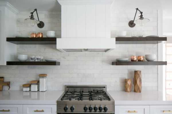 Как бы вы не старались следить за порядком на кухне, не стоит всё-таки усложнять себе жизнь. Поэтому при планировании открытых декоративных полок на вашей кухне не нужно размещать их, по понятным причинам, рядом с плитой. Согласитесь, что перспектива попадания капель жира на полки, далеко не самый приятный момент.