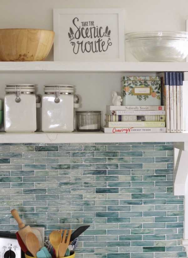 В них можно хранить небольшие кухонные принадлежности или же сделать открытый «уголок хозяйки», украшенный кулинарными книгами, предметами интерьера или цветочными растениями. 10. Узкие полочки
