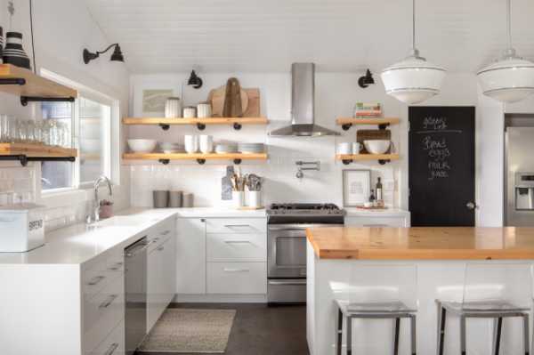 Интересный прием, которым часто пользуются дизайнеры при создании кухонного дизайна — открытые полки. Они прекрасно впишутся в любой интерьер и расширят его пространство.