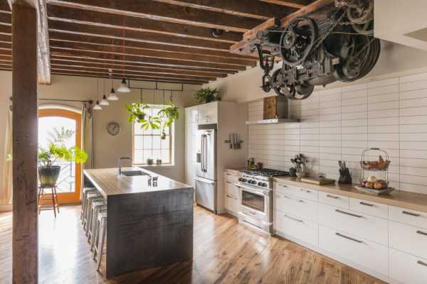 Чтобы сделать настоящую лофт-студию из своей кухни, используйте промышленный декор. Один из самых важных элементов в нем – открытое пространство.