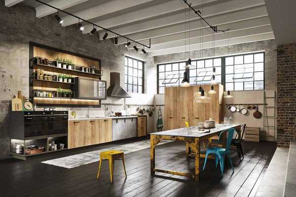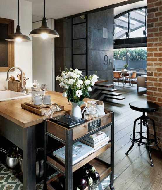 Обстановка кухни в индустриальном стиле