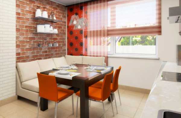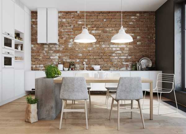 - Кирпичная кладка. Используйте ее для любимой части вашей кухни – в зоне готовки, или обеденного стола. Кирпич будет придавать помещению классический для стиля облик.