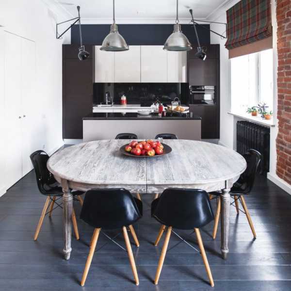 Расположение.В этом вопросе нет строгих правил. Стол может стоять у стены или посередине кухни. Может быть самостоятельным предметом или продолжением кухонного острова. А в просторной квартире может вообще вокруг себя организовать обеденную зону, вне зоны кухни.