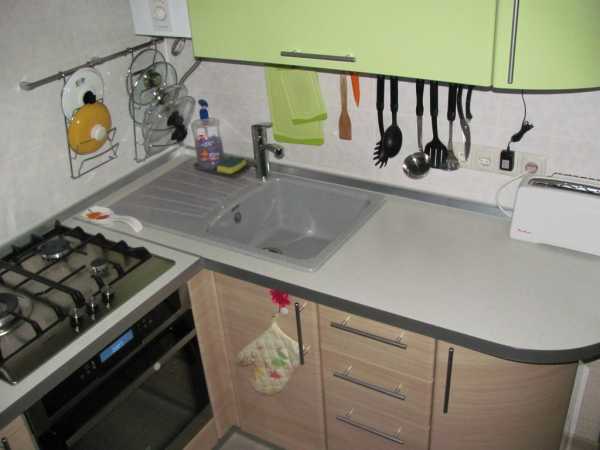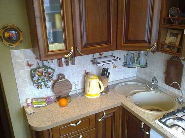 Или другой вариант, который можно взять на заметку, когда выбор пал на очень маленькие угловые кухни.
