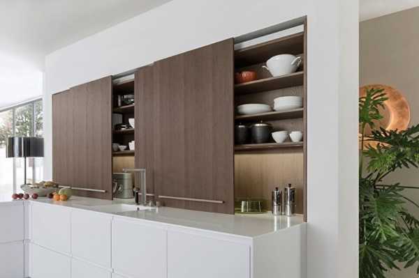 В любом случае, будь то угловая или линейная кухня, за счет изменения высоты можно получить дополнительные площади для хранения посуды или продуктов.