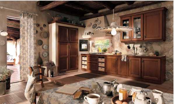 Прежде чем приступать к наполнению кухни предметами обстановки, следует позаботиться о том, чтобы отделка помещения соответствовала общей характеристике стиля.