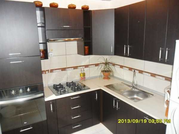 Кроме того, угловые кухонные гарнитуры фото остаются практически единственным безальтернативным вариантом для помещений, где волею архитекторов — проектировщиков установлен короб централизованной вентиляции дома.