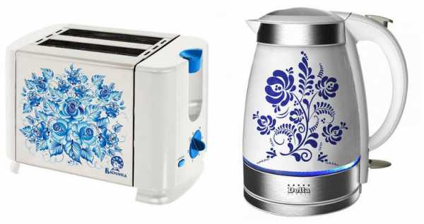 Хорошо смотрится гжель на дверях духовок или холодильников, но тут стоит помнить о масштабах — чем меньше “полотно”, тем изящнее должен быть узор.