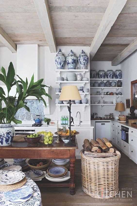 Кстати: Для этого стиля характерно использование посуды не только в утилитарных целях, но и в качестве декора. Расставьте расписные тарелки или бокалы по открытым полкам.