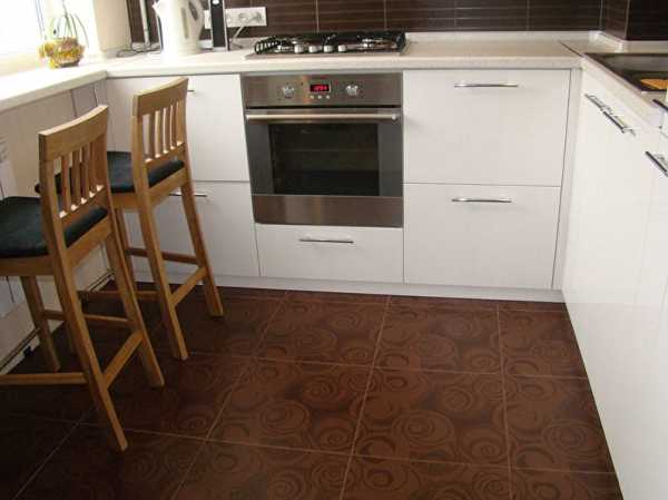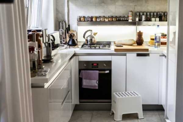 Это красиво и удобно, но увеличивает риск затопить соседей в случае прорыва трубы. Канализационный слив в этом случае сделать сложнее, т.к. он будет длиннее. Но такое расположение мебели может быть оправдано с точки зрения эргономики. В некоторых кухнях в хрущевках, где для холодильника нет стены с подходящими под его габариты размерами, этот вариант планировки кажется самым оптимальным.