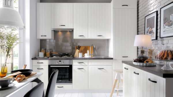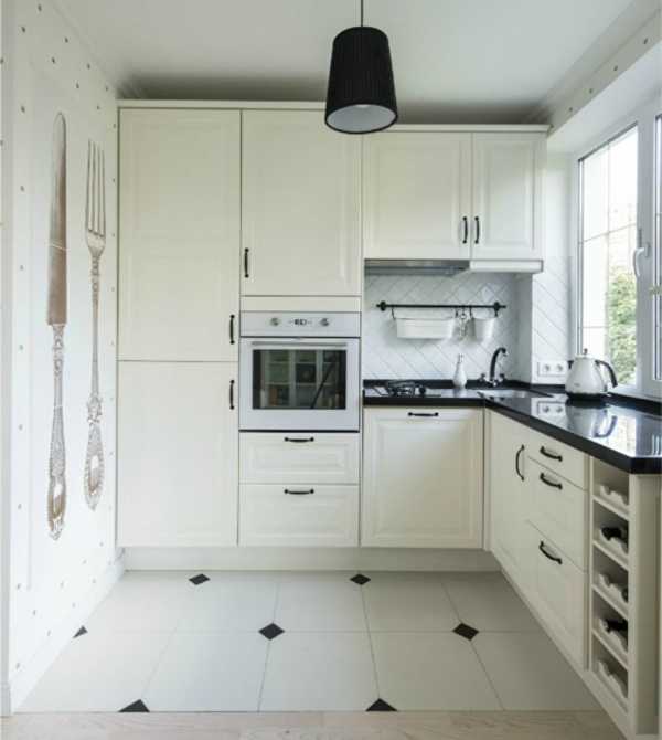 Светлая кухня визуально кажется больше и просторнее. Для отделки стен в данном случае идеально подойдут белый, все оттенки бежевого, пастельные и приглушенные тона любых цветов.