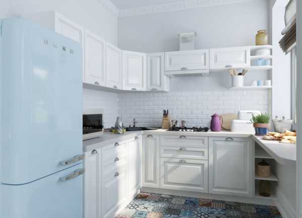 Холодильник может по цвету идеально сочетать с цветом стен или мебели. Например, белые шкафы и белый холодильник.