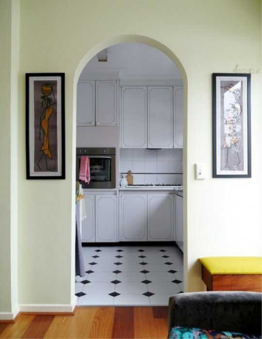 Если кухня с электрической плитой, то можно оформить вход без двери в виде арки.