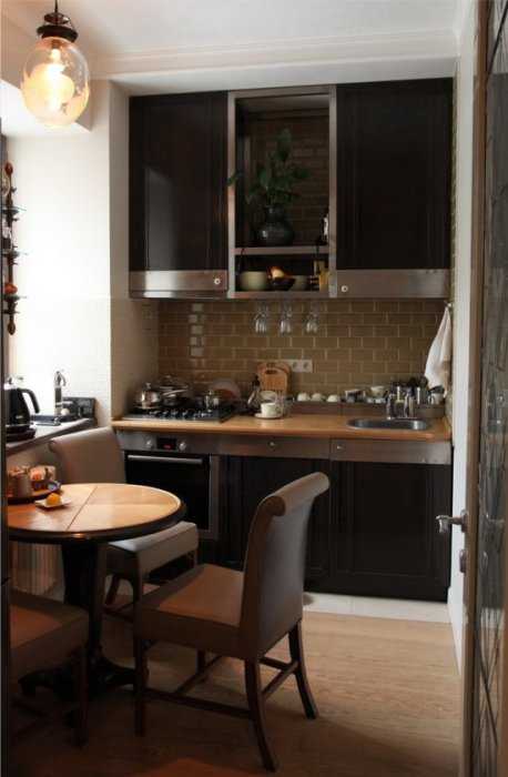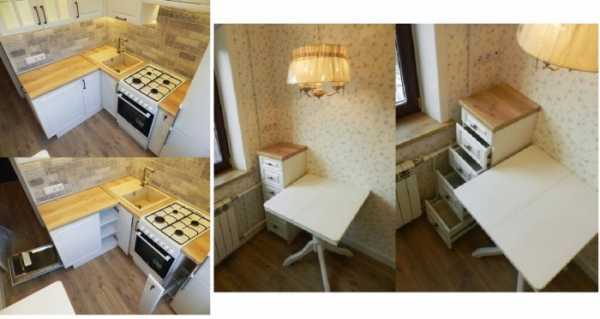 Стол-трансформер – лучшее решение для маленькой кухни. Это могут быть конструкции с откидной столешницей или выдвижные.